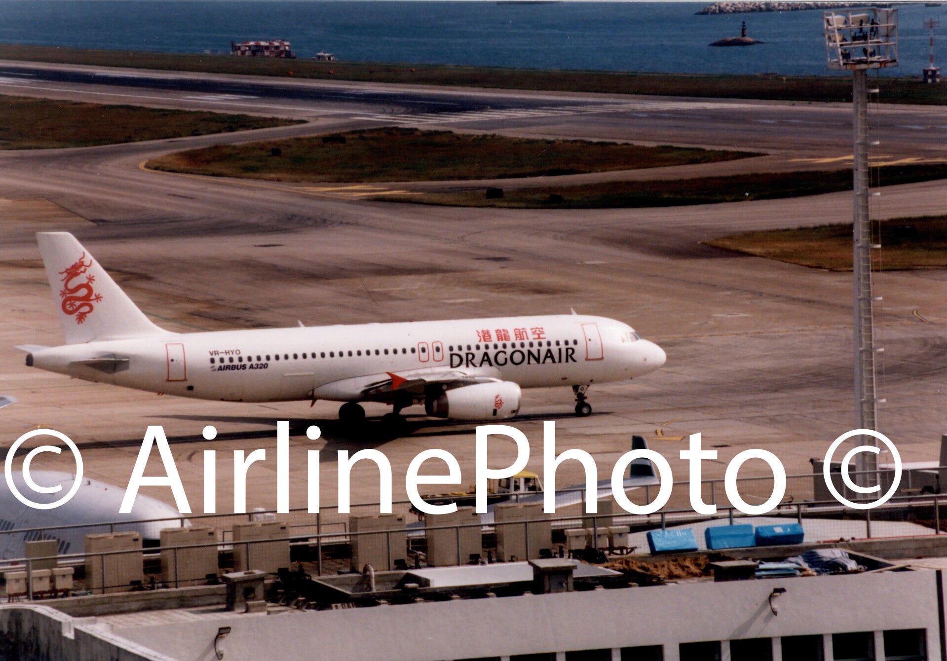 Dragon Air Airbus 320-231 on the ramp at Hong Kong Kai Tak 10-10-1994