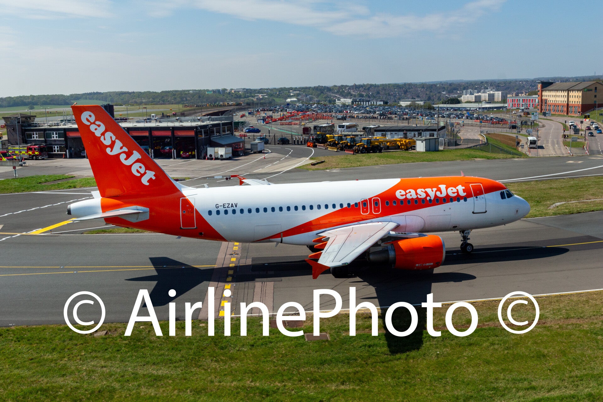 G-EZAV - Airbus A319-111 - easyJet sideview on taxi to the terminal at London Luton Airport UK 20-04-2025